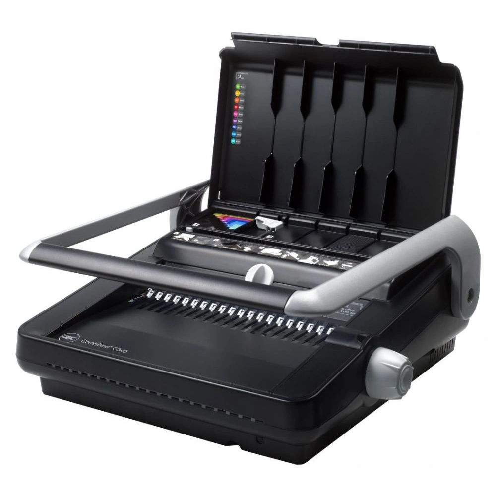 - Сшивает до 450 листов, используя пружину диаметром 51 мм