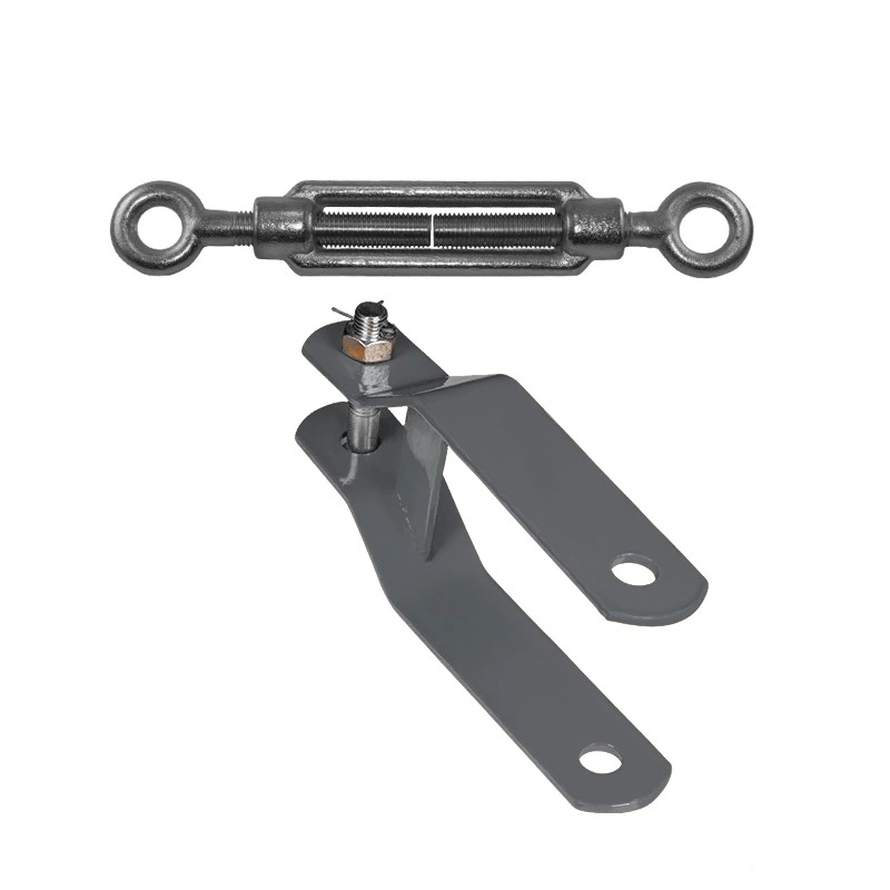 Скоба с талрепом используется для регулировки натяжения стальных тросов. На концевых элементах талрепа (стержнях) нанесена резьба разной направленности, за счет чего возможно изменение длины устройства. Конструкция надежная, подходит для работ, связанных с подъемом и перемещением грузов. Является стандартным элементом люлек.