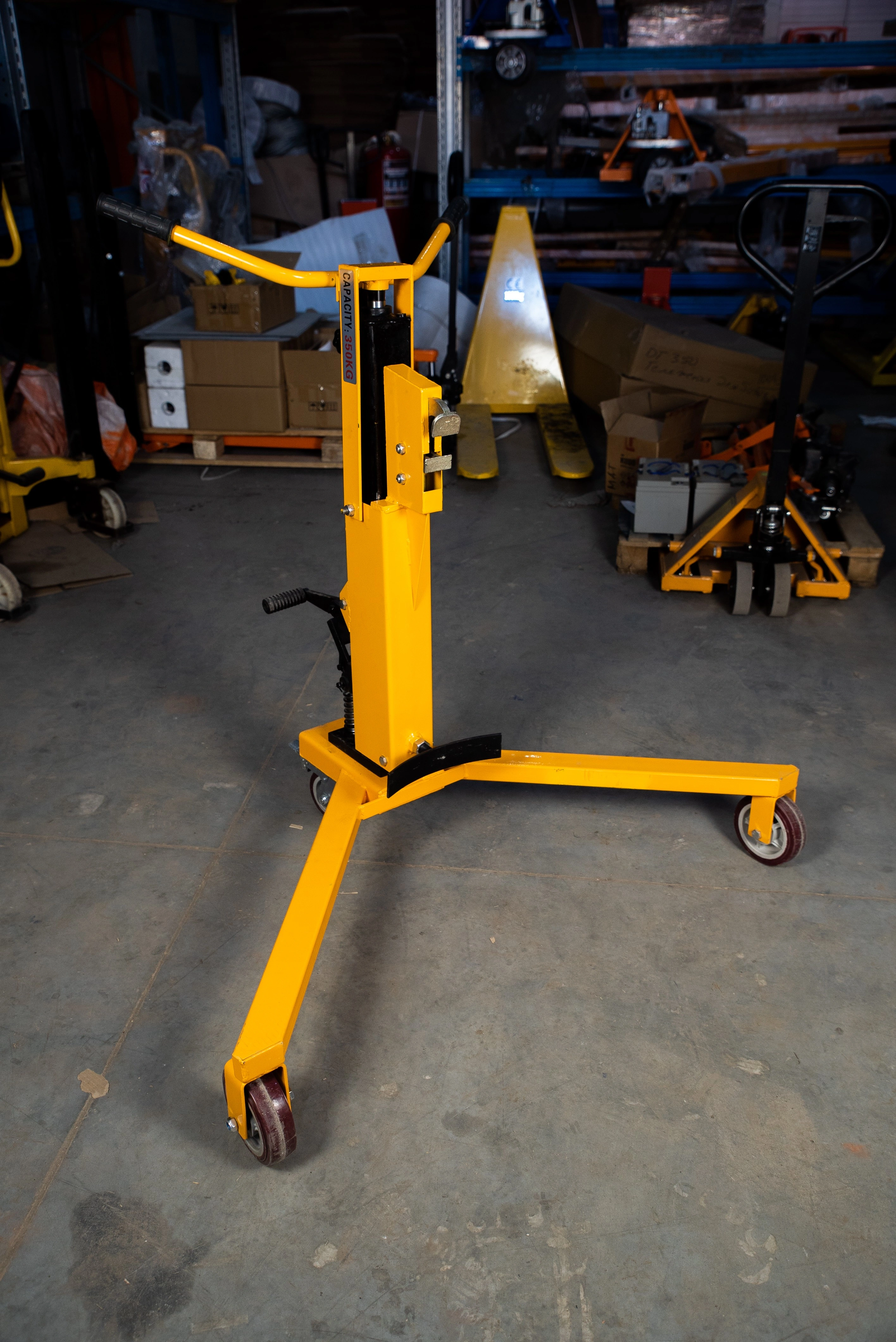 Тележка для бочек TOR DT350 – сделана не только для того, чтобы перемещать бочки с места на место. Основная сфера применения этой тележки – снятие и постановка бочки на паллеты, весы и другие возвышенные платформы. Сейчас для облегчения погрузочно-разгрузочных работ многие грузы перевозятся на паллетах, поэтому актуальность такой тележки очень высока. Конструкция тележки и автоматический зацеп позволяет очень быстро погружать бочку на паллет. Принцип действия захвата очень прост. Заводим нижнюю часть зацепа за кромку бочки, начинаем поднимать с помощью гидравлического насоса бочку, верхняя часть зацепа автоматически прижимает верхнюю кромку бочки, полностью поднимаю бочку за кромку. Тележка TOR DT350Bсостоит из следующих элементов: металлическая прочная рама, ручки для управления тележкой, гидравлический насос подъема, ножная педаль подъема, упор для бочки, автоматический замок захвата бочки за верхнюю кромку, 3 колеса (рулевое колесо с тормозом). Высота подъема бочки 300 мм, что позволяет работать с любыми паллетами. Диаметр бочки до 590 мм. Приобретайте тележки в интернет-магазине eme54.ru, получайте гарантию от производителя. Все необходимые запасные части и колеса в наличии.