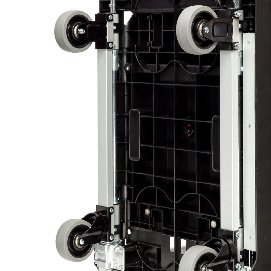 Платформенная складная тележка FF-XL - это удобное приспособление для перевозки упакованных или штучных грузов. Тележка имеет складную конструкцию, поэтому удобна в хранении. Разложить конструкцию можно очень быстро и без лишних усилий. Размер платформы 840х560мм, максимальная высота ручки 980мм., диаметр колес 125мм. При компактных габаритах на тележке можно перевозить грузы весом до 200кг. Складные тележки идеально подходят для транспортировки выставочного оборудования, обслуживания маленьких складов и перевозки грузов в домашних условиях или во время путешествий. За счет узкого профиля и компактных размеров технику легко разместить в багажнике машины.